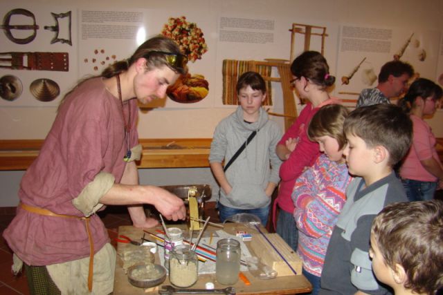 Výstava bude zahájena tematickou tvořivou dílnou, která se uskuteční v sobotu 28. ledna 2017 od 13.00 do 15.00 hodin. Během odpoledne bude mít každý, kdo si nenechá vernisáž ujít, jedinečnou příležitost vyrobit si drátěné šperky, vyzkoušet si pravěké způsoby spřádání, tkaní na stavu i na formě. K vidění i vyzkoušení bude tvoření s hlínou na kruhu i v ruce, práce s kůží a karetkování, které patří k nejstarším textilním technikám. Zkušenými pomocníky budou přátelé živé historie z o. s. Bacrie, kteří se zabývají experimentální archeologií a řadu technik nejen osobně předvedou, ale vše vás i velice rádi naučí.