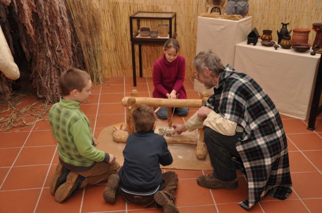 „ Dále si pak do rukou mohou vzít repliky zbraní a nástrojů, které lidé používali při lovu, výrobě předmětů nebo vaření. Jedná se o kopie pravěké keramiky, kamenné, bronzové a železné sekery, nože, kamenný srp, bronzový meč, velkomoravský štít atd. Výstava je celá interaktivní. Malí i velcí se mohou vžít do role našich předků a vyzkoušet si keltský šat, drcení obilí, tkaní na vertikálním stavu nebo se podepsat či napsat vzkaz staroslověnským písmem – hlaholicí,“ dodává.